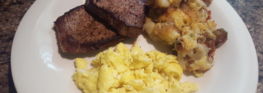 This Sunday I decided to switch up my usual breakfast routine. Since I didn’t get around to cooking until around 10:00, and the meal was a bit more hearty, let’s just call it brunch. Here’s how I prepared our steak, eggs, and potatoes.