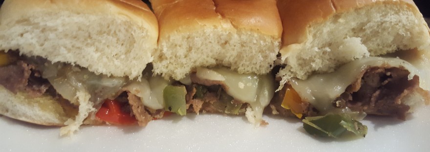 Remember those convenience items I purchased recently? They came in handy for a quick lunch. I made Philly Cheesesteak sliders for two.