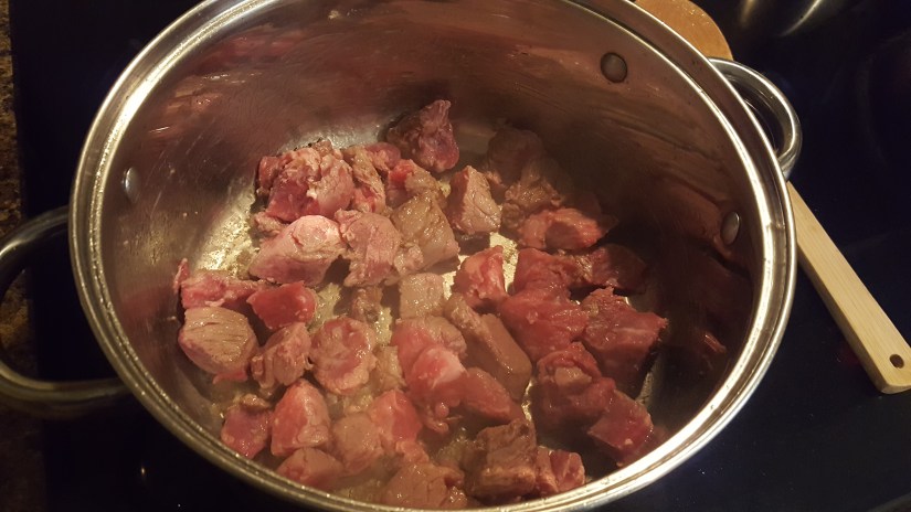 First I browned the beef and seasoned with a little salt & pepper. I only seared it a little because it would cook through with the rest of the process.