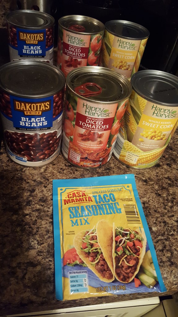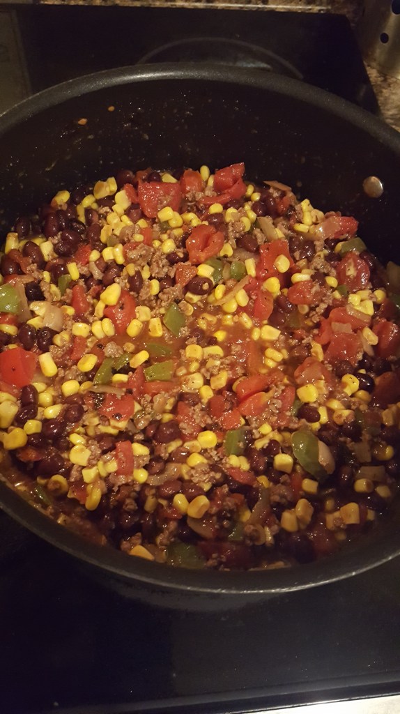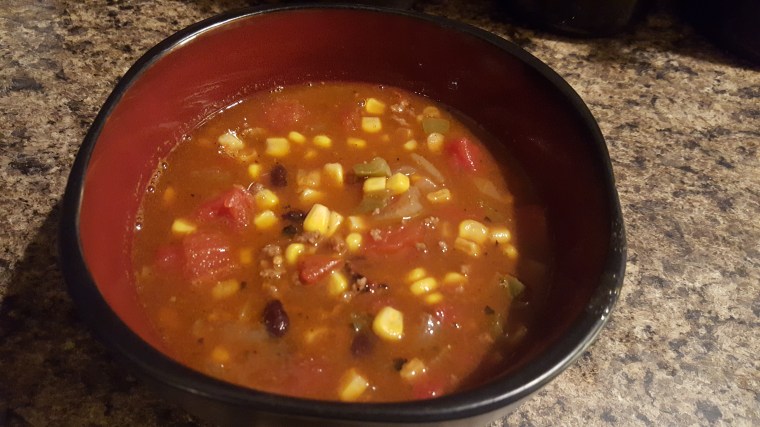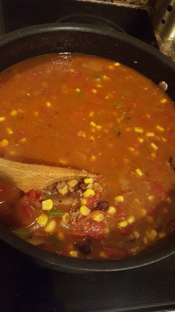 There are several recipes for taco soup, but this particular day I didn’t feel like looking one up while I was at the store. I just went with my general knowledge and taste. Here’s my take.