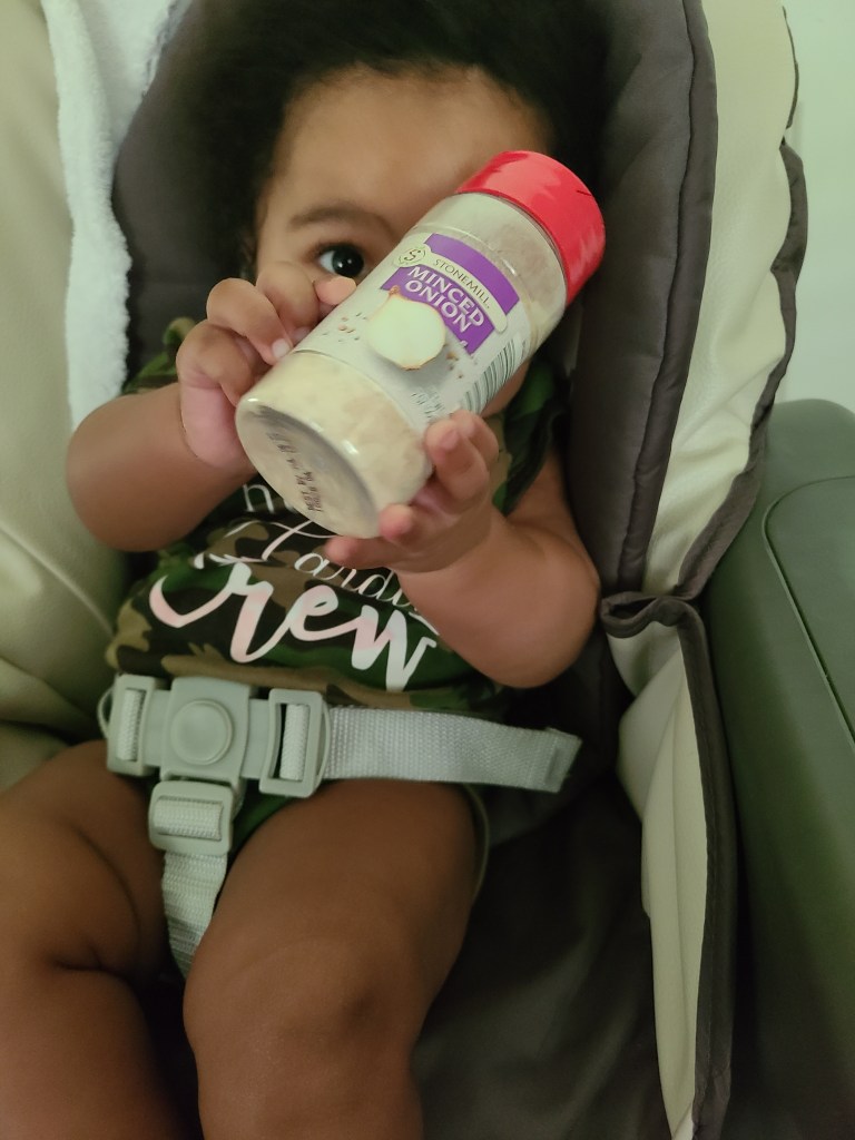 The Girl is 4 months old, super active, alert and talkative! She’s often in the kitchen with me, but today I let her get in on the action a bit.