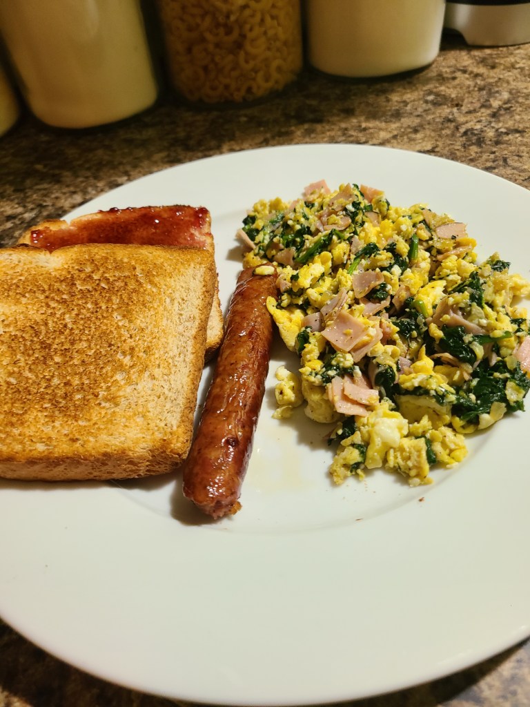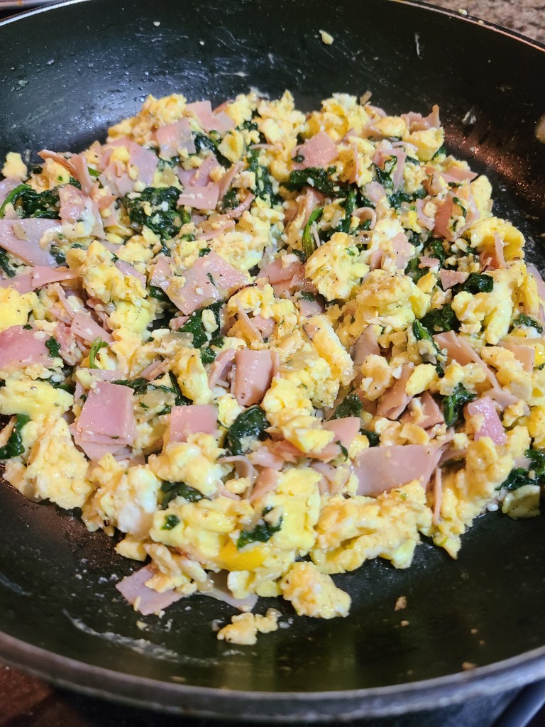 Breakfast scrambles are one of my favorite things to prepare when I want to spice up our usual scrambled eggs routine. The ingredients vary, but there’s always cheese! lol Here are today’s ingredients: